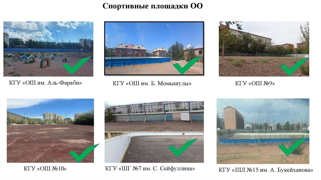 «ОШ №9», КГУ «ОШ №10», КГУ «ШГ им. С. Сейфуллина», КГУ