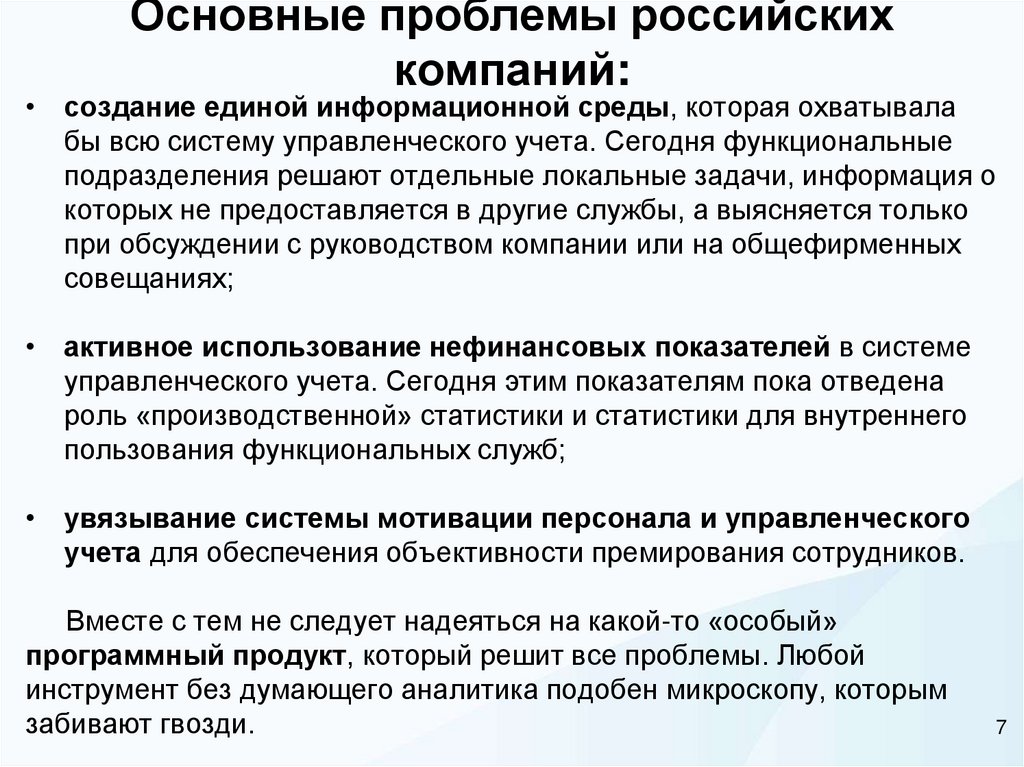 Основные проблемы российскихкомпаний: