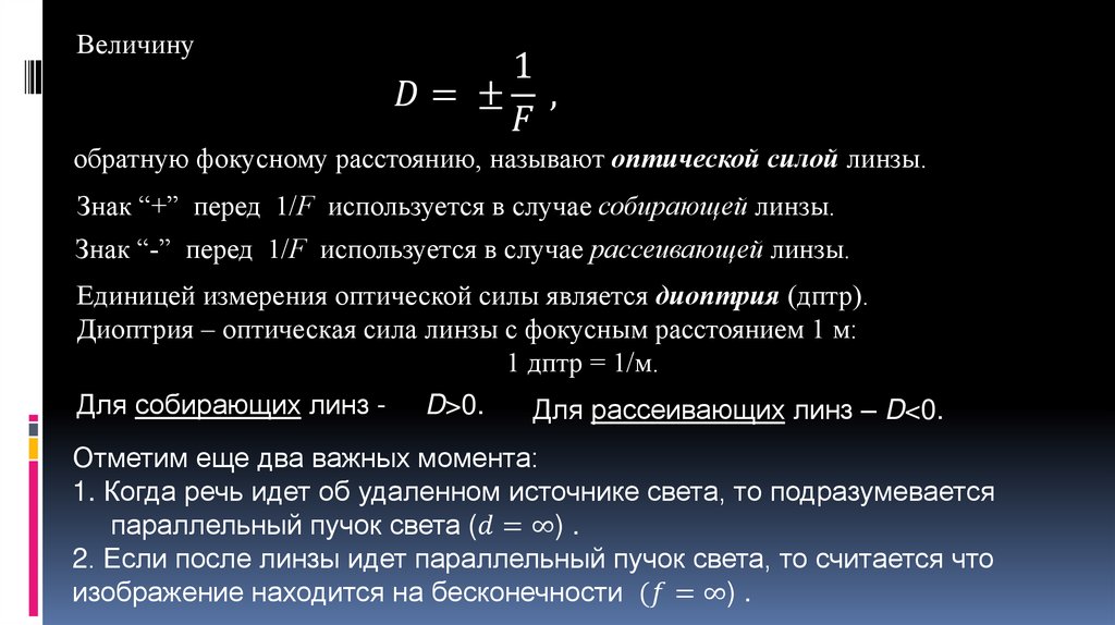 Геометрическая и волновая оптика. Геометрическая оптика. Линзы. Оптическая система глаза