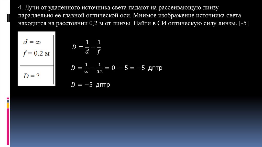 Геометрическая оптика. Линзы. Построение изображения в рассеивающей линзе