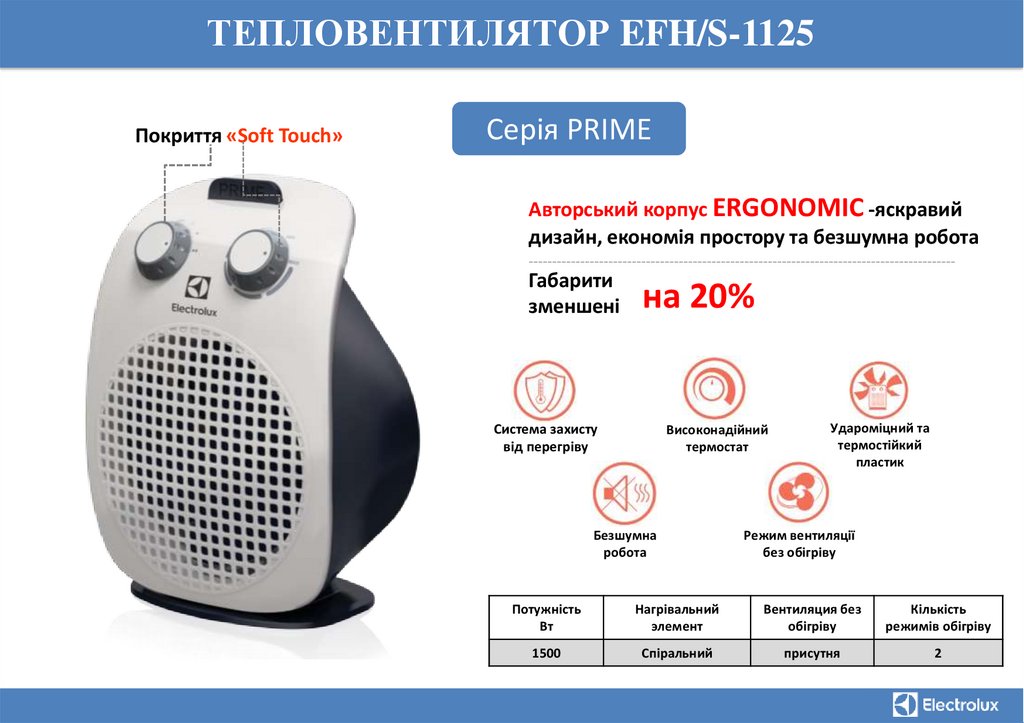ТЕПЛОВЕНТИЛЯТОР EFH/S-1125Покриття «Soft Touch»