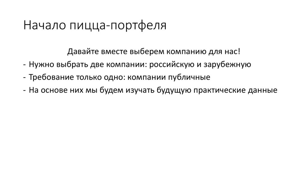 Начало пицца-портфеляДавайте вместе выберем компанию для нас!