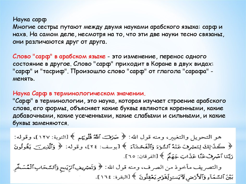 Наука сарфМногие сестры путают между двумя науками арабского языка: сарф и