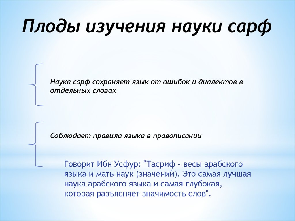 Плоды изучения науки сарфНаука сарф сохраняет язык от ошибок и диалектов в