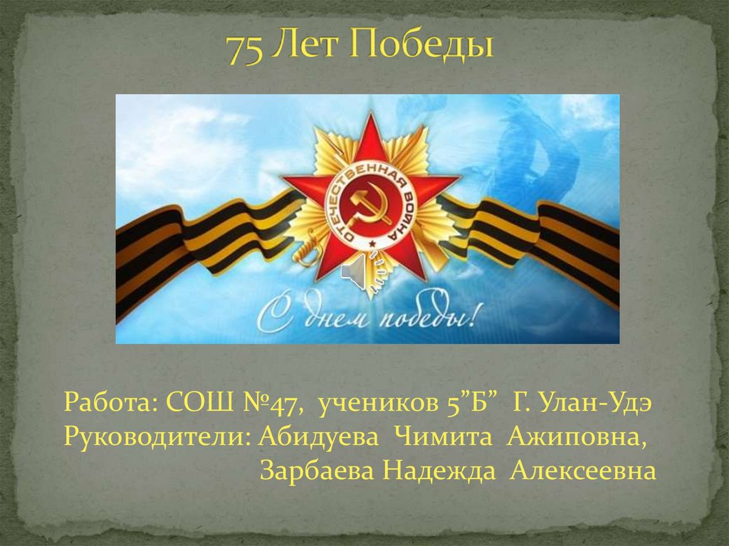 Работа: СОШ №47, учеников 5”Б” Г. Улан-УдэРуководители: Абидуева Чимита Ажиповна,