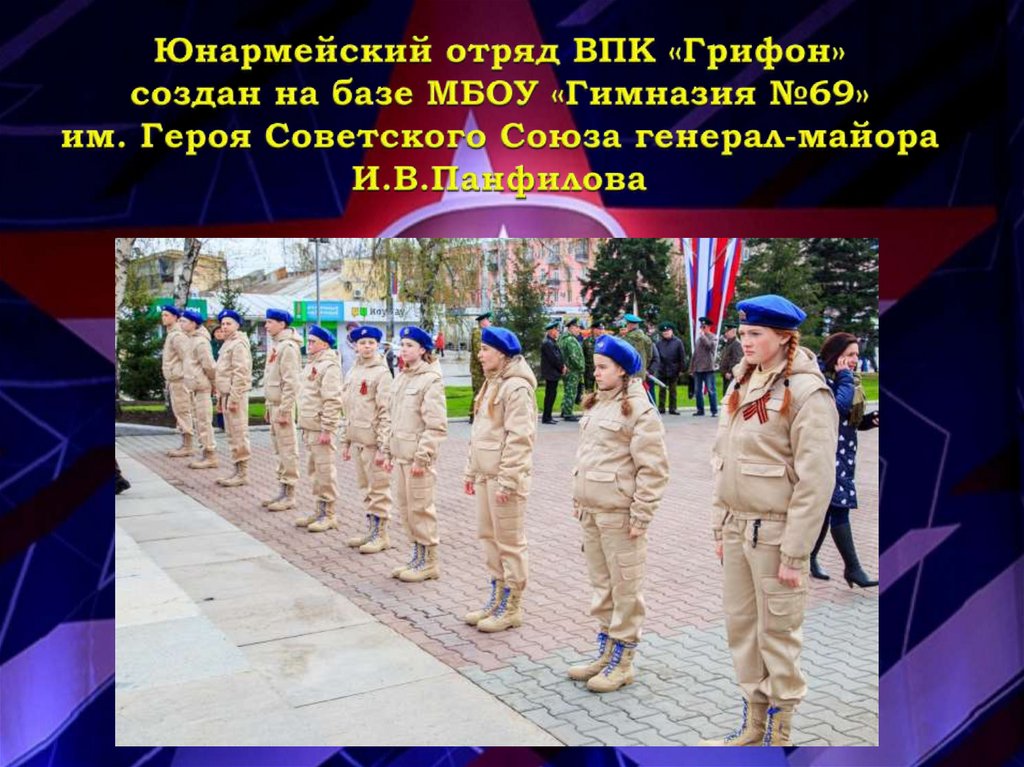 Юнармейский отряд ВПК «Грифон» создан на базе МБОУ «Гимназия №69»