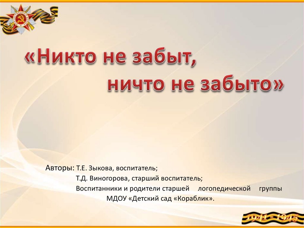 Авторы: Т.Е. Зыкова, воспитатель;Т.Д. Виногорова, старший воспитатель;