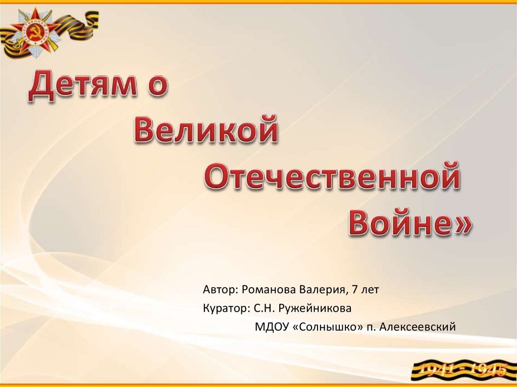 Автор: Романова Валерия, 7 летКуратор: С.Н. Ружейникова