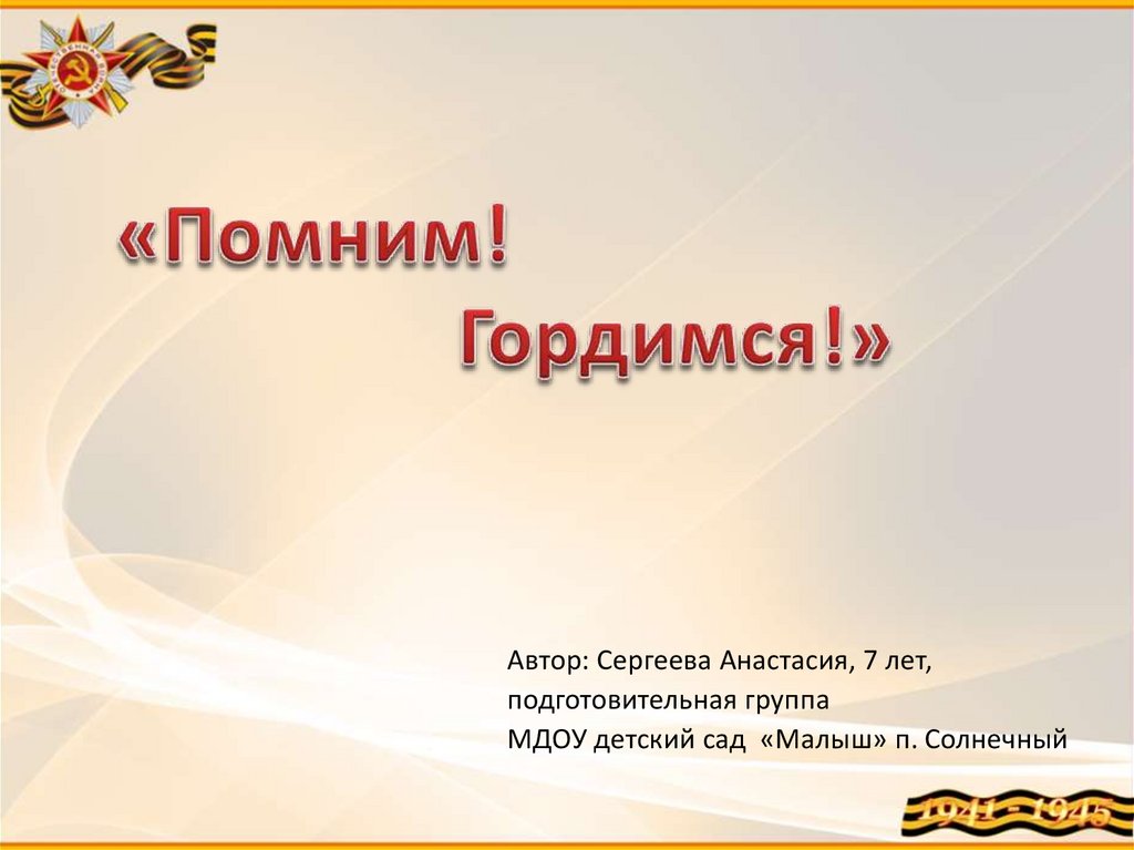 Автор: Сергеева Анастасия, 7 лет,подготовительная группа