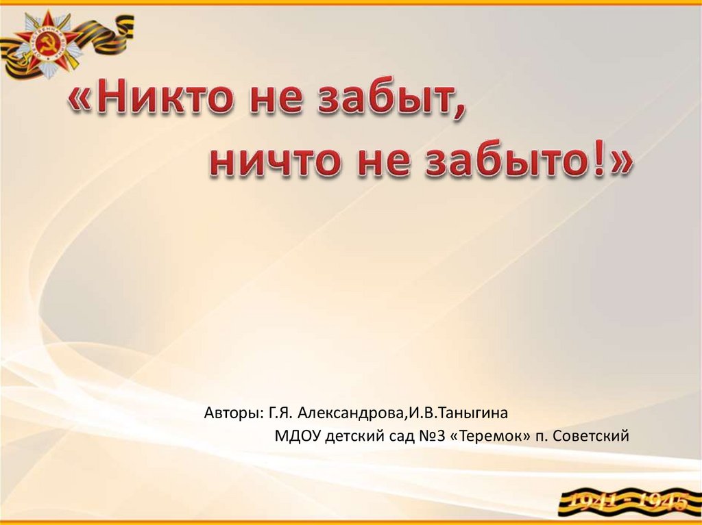 Авторы: Г.Я. Александрова,И.В.ТаныгинаМДОУ детский сад №3 «Теремок» п. Советский