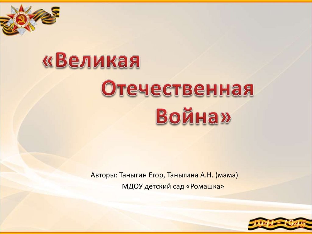 Авторы: Таныгин Егор, Таныгина А.Н. (мама)МДОУ детский сад «Ромашка»