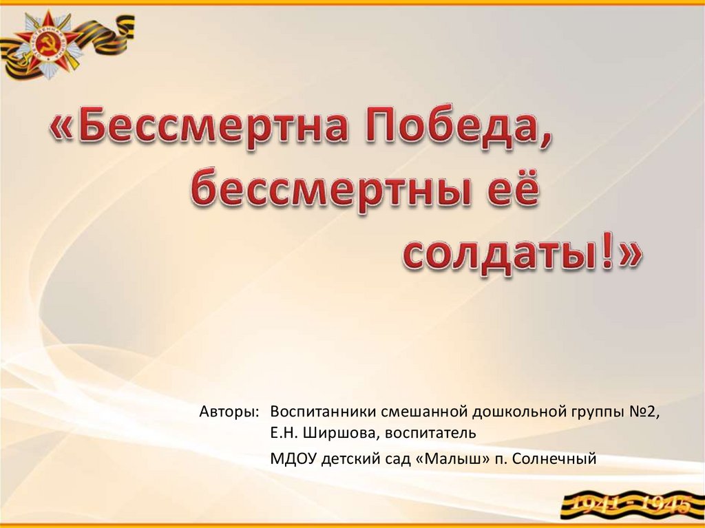 Авторы: Воспитанники смешанной дошкольной группы №2,Е.Н. Ширшова, воспитатель
