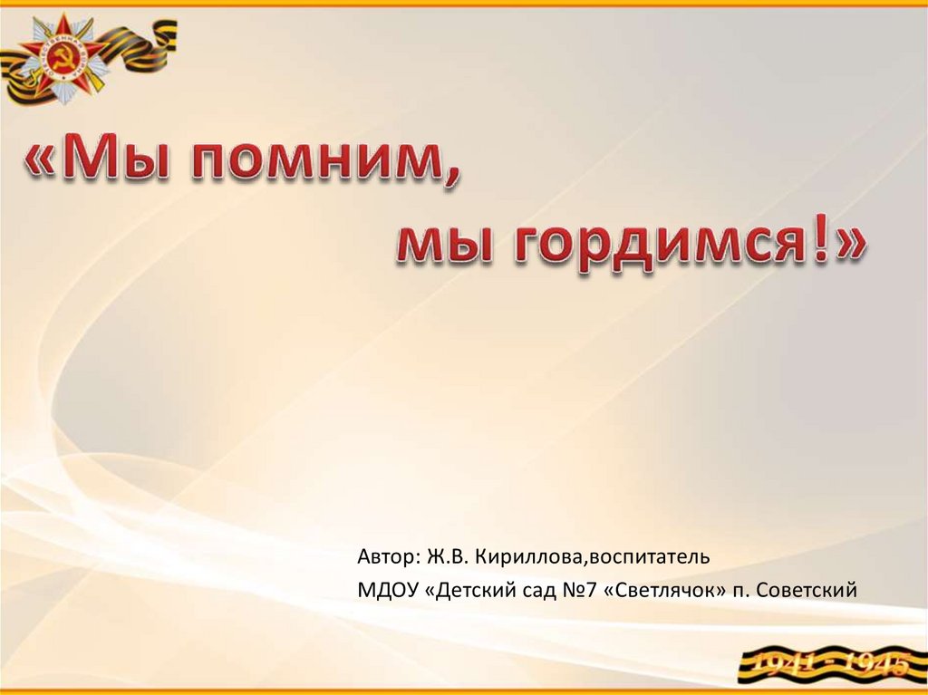 Автор: Ж.В. Кириллова,воспитательМДОУ «Детский сад №7 «Светлячок» п. Советский