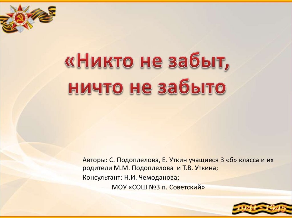 Авторы: С. Подоплелова, Е. Уткин учащиеся 3 «б» класса и ихродители М.М. Подоплелова и Т.В. Уткина;