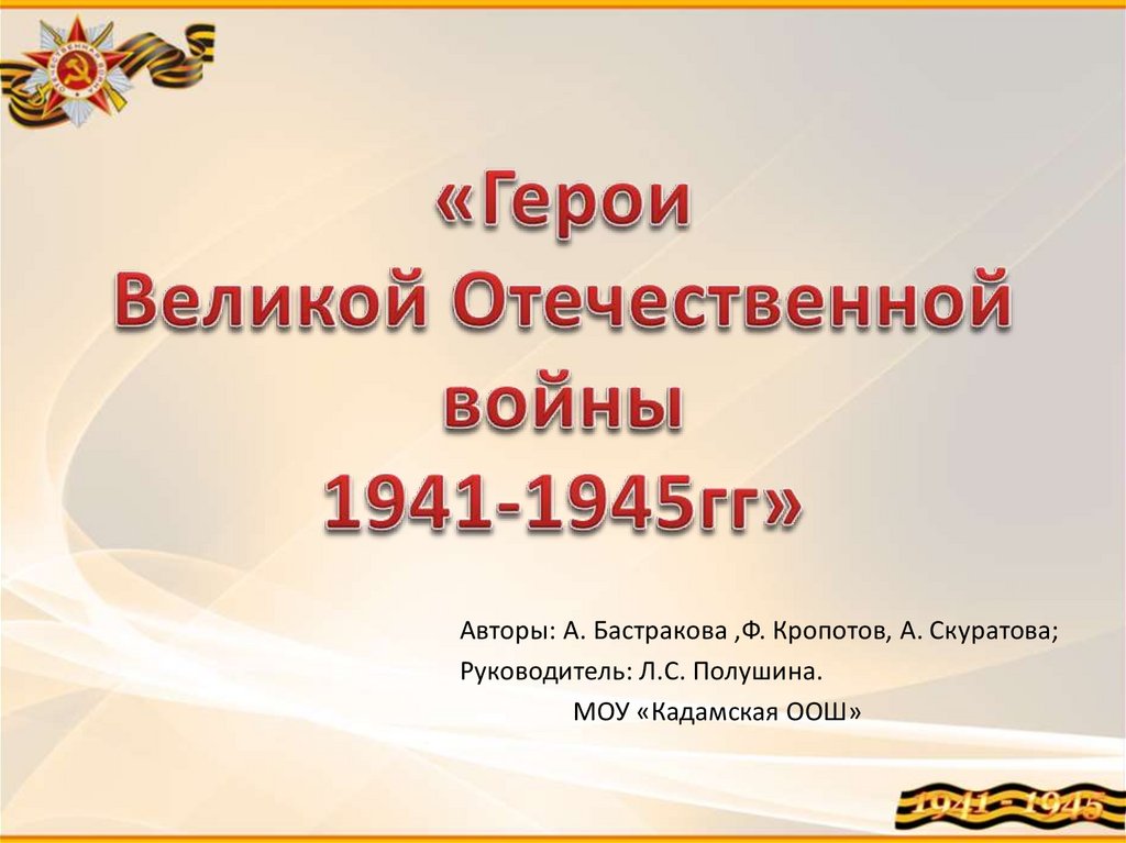 Авторы: А. Бастракова ,Ф. Кропотов, А. Скуратова;Руководитель: Л.С. Полушина.