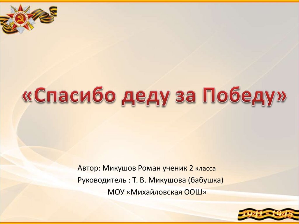 Автор: Микушов Роман ученик 2 классаРуководитель : Т. В. Микушова (бабушка)
