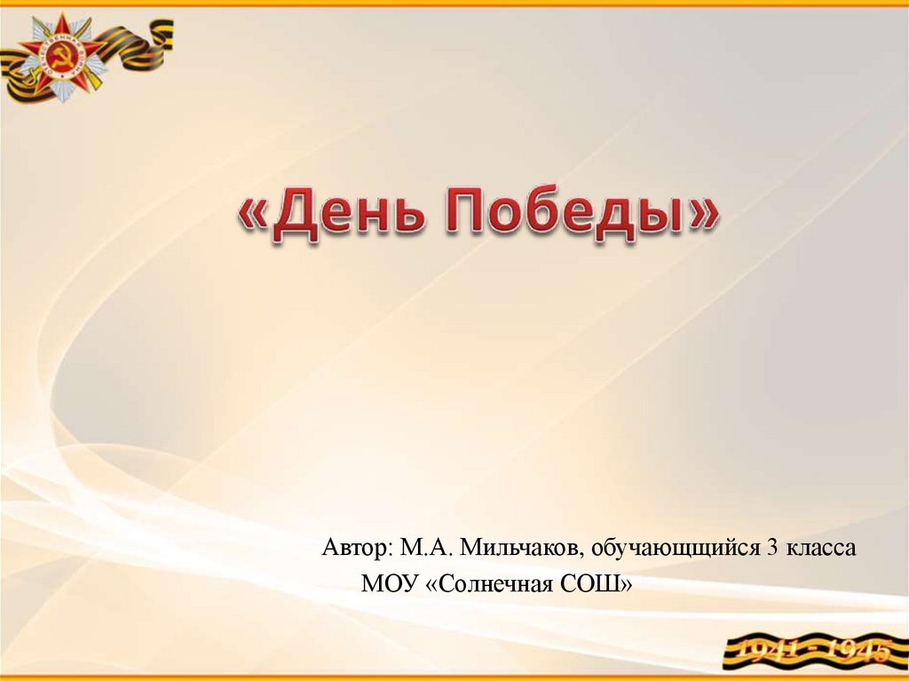 Автор: М.А. Мильчаков, обучающщийся 3 классаМОУ «Солнечная СОШ»