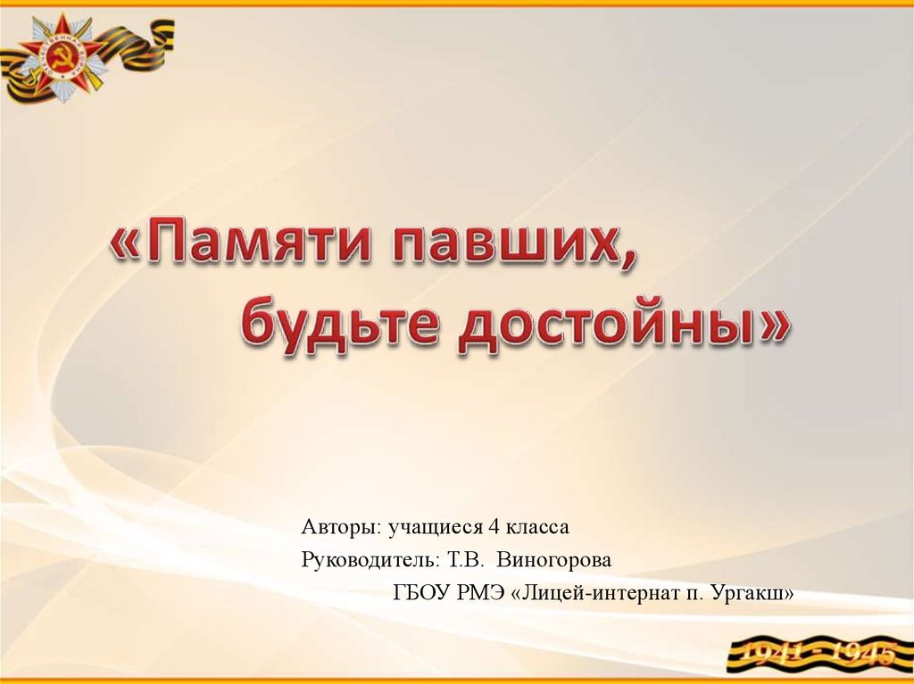 Авторы: учащиеся 4 классаРуководитель: Т.В. Виногорова