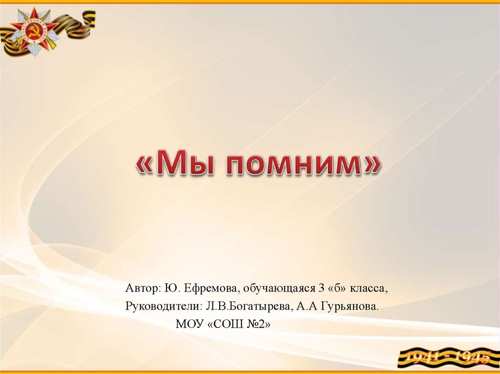 Автор: Ю. Ефремова, обучающаяся 3 «б» класса,Руководители: Л.В.Богатырева, А.А Гурьянова.