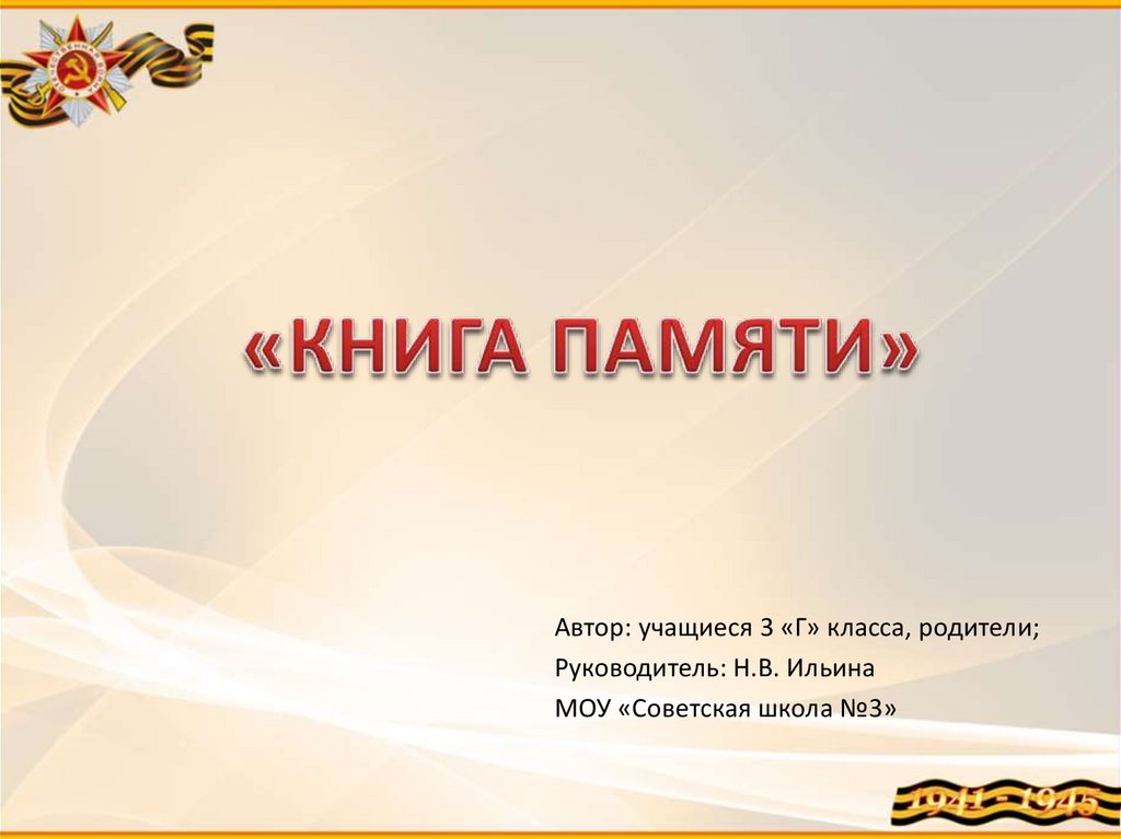 Автор: учащиеся 3 «Г» класса, родители;Руководитель: Н.В. Ильина
