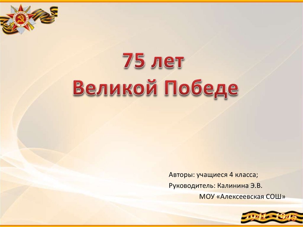 Авторы: учащиеся 4 класса;Руководитель: Калинина Э.В.