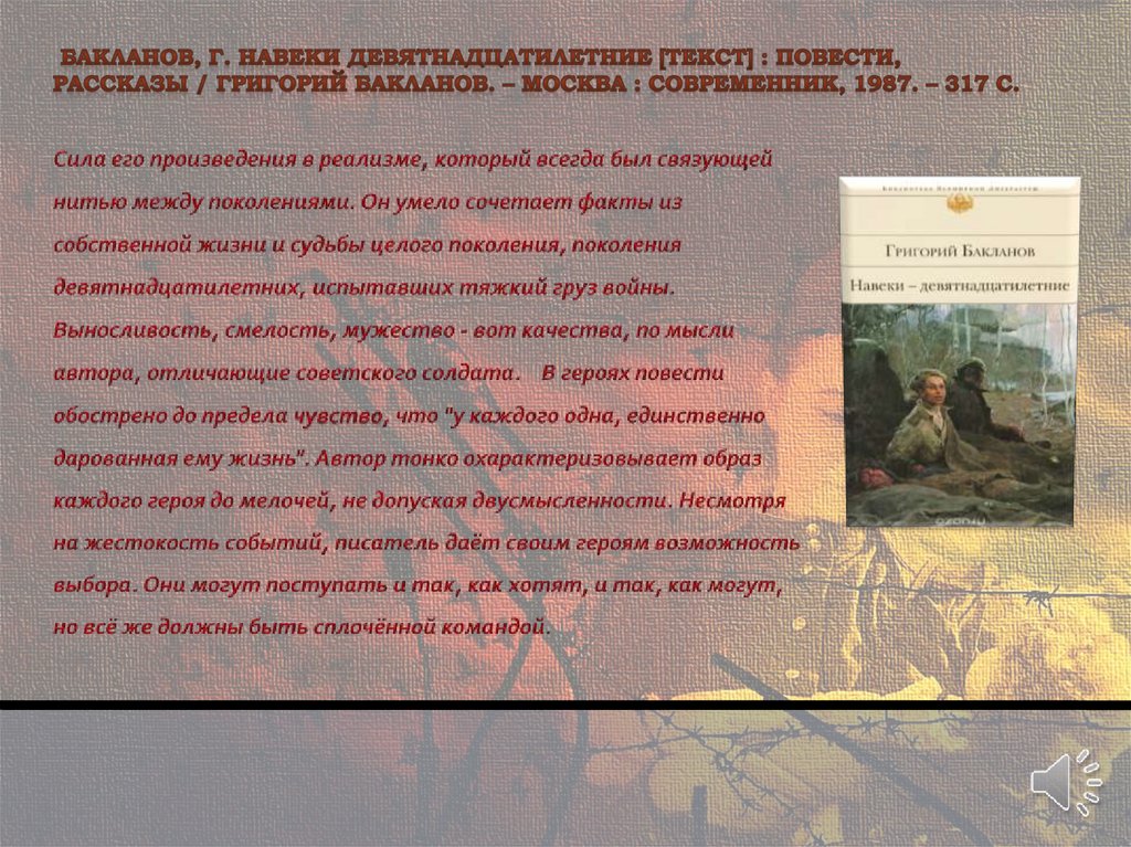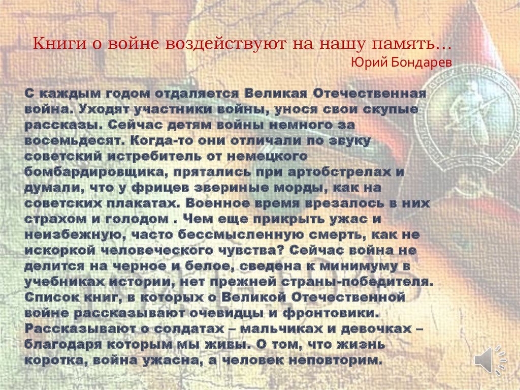 Книги о войне воздействуют на нашу память…Юрий Бондарев