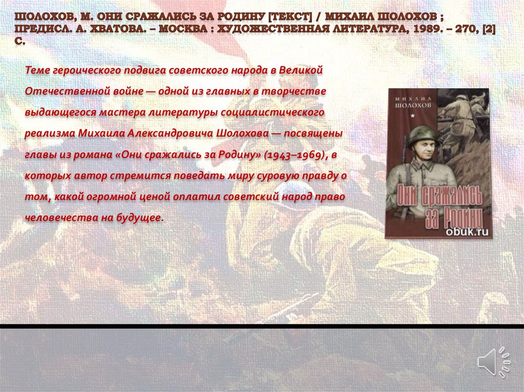 главы из романа «Они сражались за Родину» (1943–1969), в