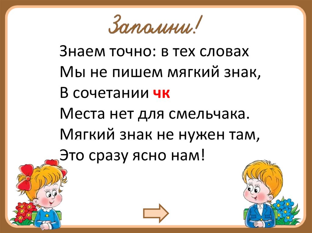 Знаем точно: в тех словахМы не пишем мягкий знак,