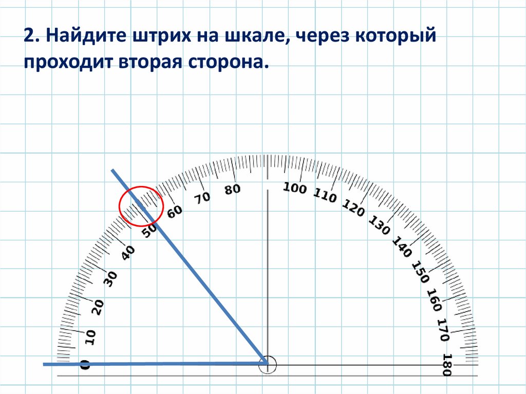 2. Найдите штрих на шкале, через которыйпроходит вторая сторона.