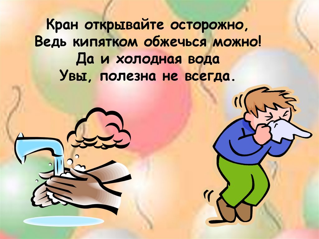 Кран открывайте осторожно,Ведь кипятком обжечься можно!