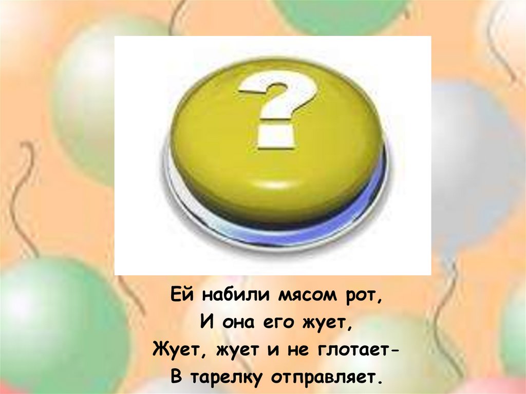 Ей набили мясом рот,И она его жует,