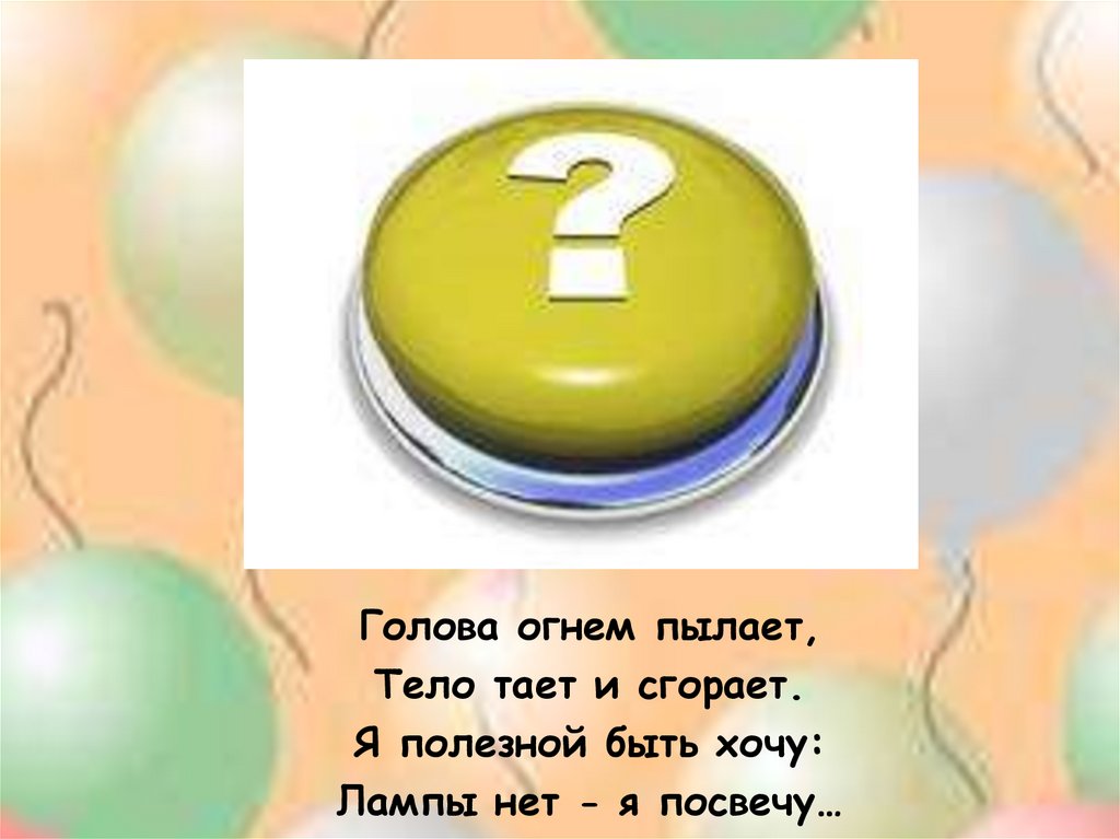 Голова огнем пылает,Тело тает и сгорает.