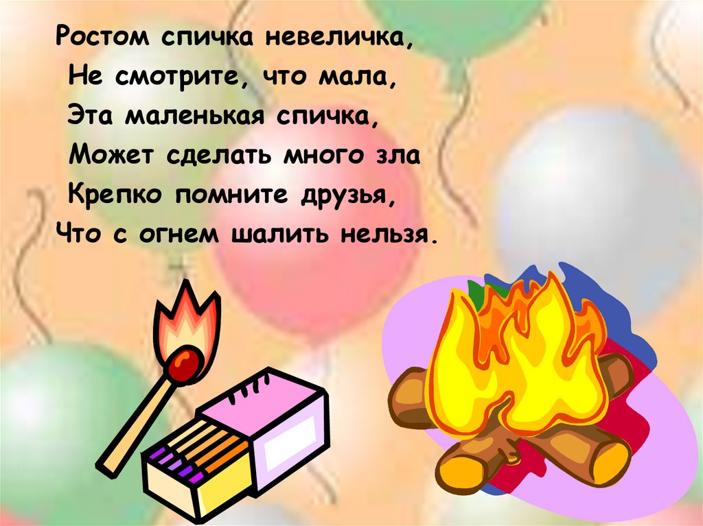 С огнем, ребята, не играйте,А увидав огонь и дым,