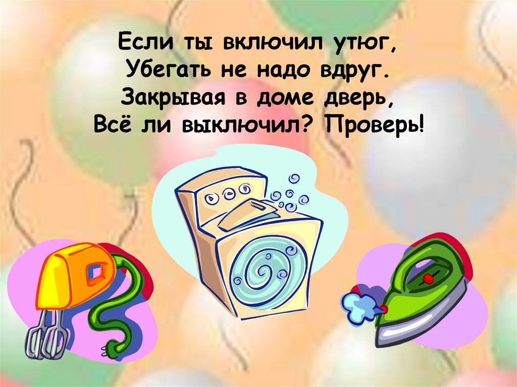 Если ты включил утюг,Убегать не надо вдруг.