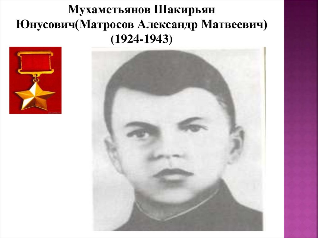 Мухаметьянов ШакирьянЮнусович(Матросов Александр Матвеевич)