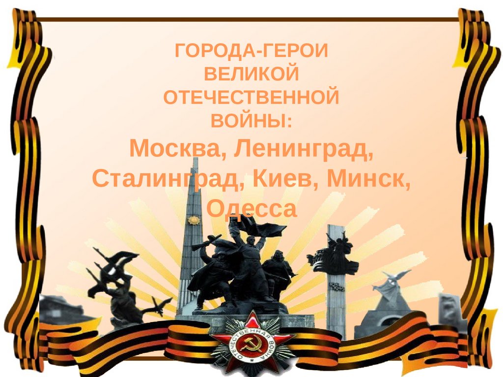 Города-герои великой отечественной войны: Москва, Ленинград, Сталинград, Киев, Минск, Одесса