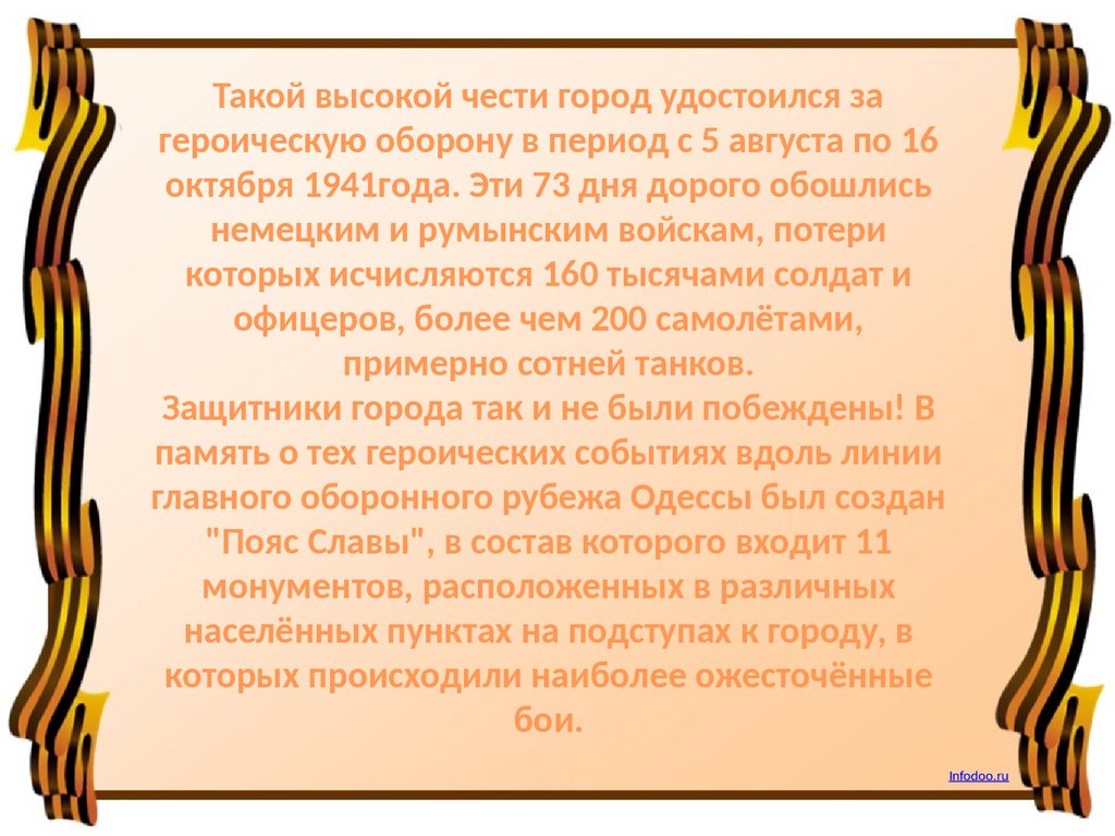 Такой высокой чести город удостоился загероическую оборону в период с 5 августа по 16