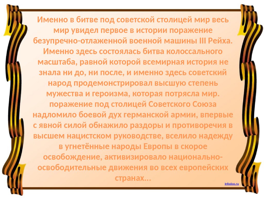 Именно в битве под советской столицей мир весьмир увидел первое в истории поражение