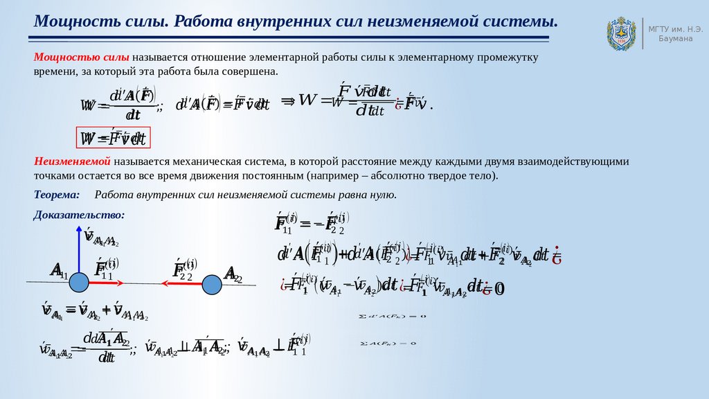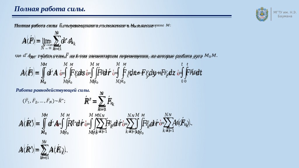 Элементарная работа силы. Лекция 6