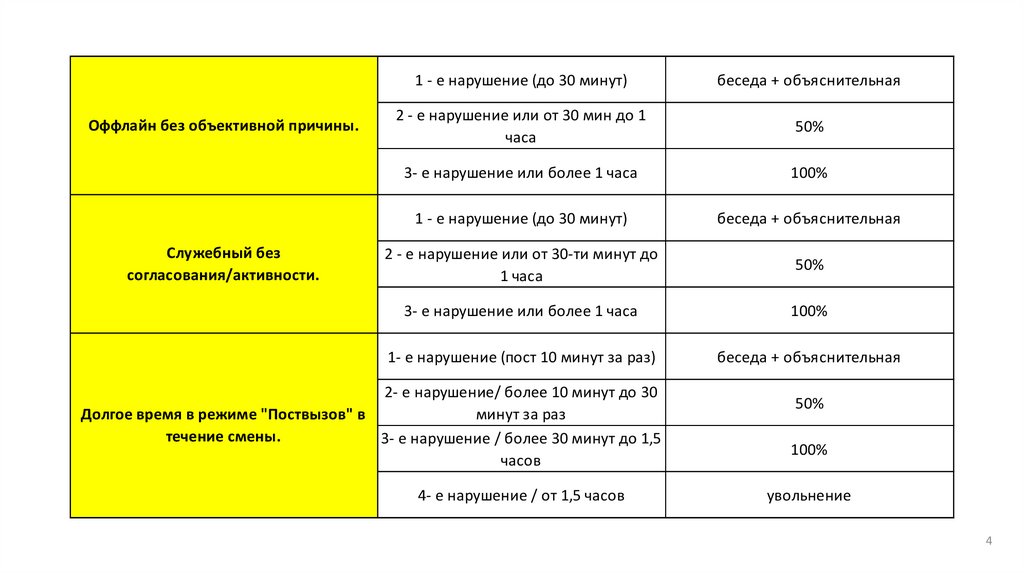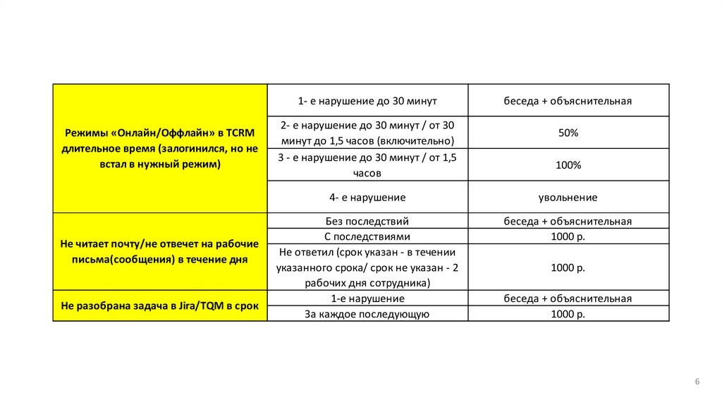1- е нарушение до 30 минутРежимы «Онлайн/Оффлайн» в TCRM