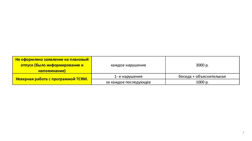 Не оформлено заявление на плановыйотпуск (было информирование и