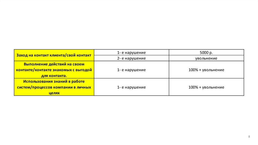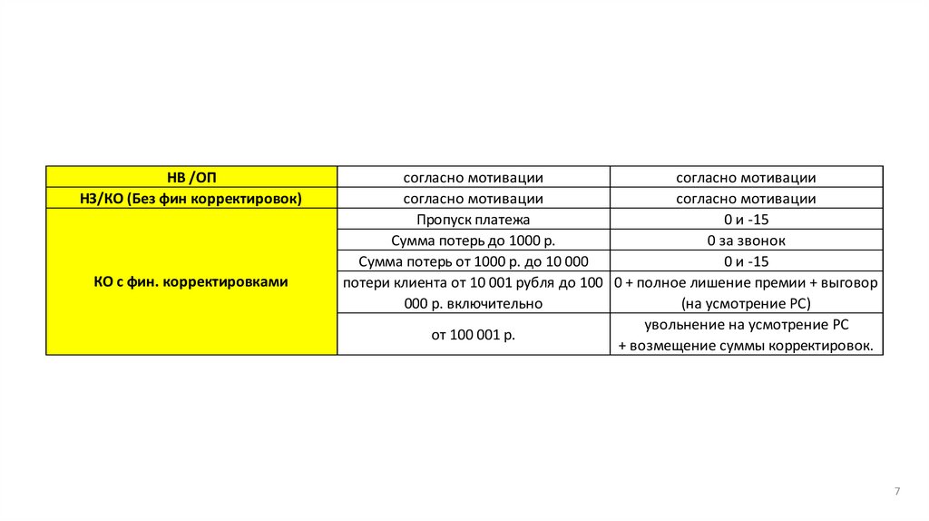 потери клиента от 10 001 рубля до 100 0 + полное лишение премии + выговор