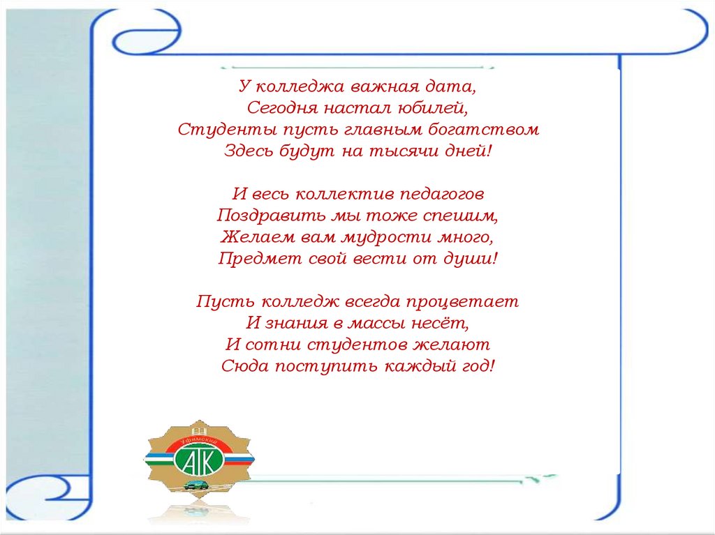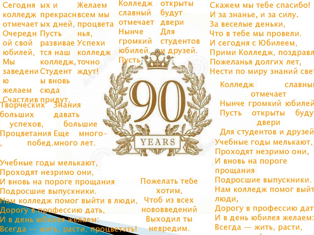 У колледжа важная дата,Сегодня настал юбилей,