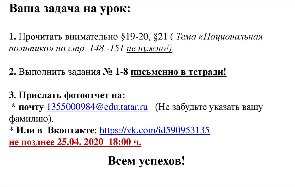 Ваша задача на урок:1. Прочитать внимательно §19-20, §21 ( Тема «Национальная