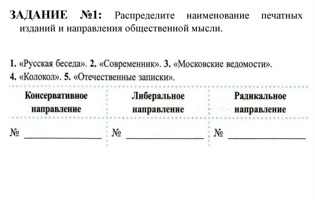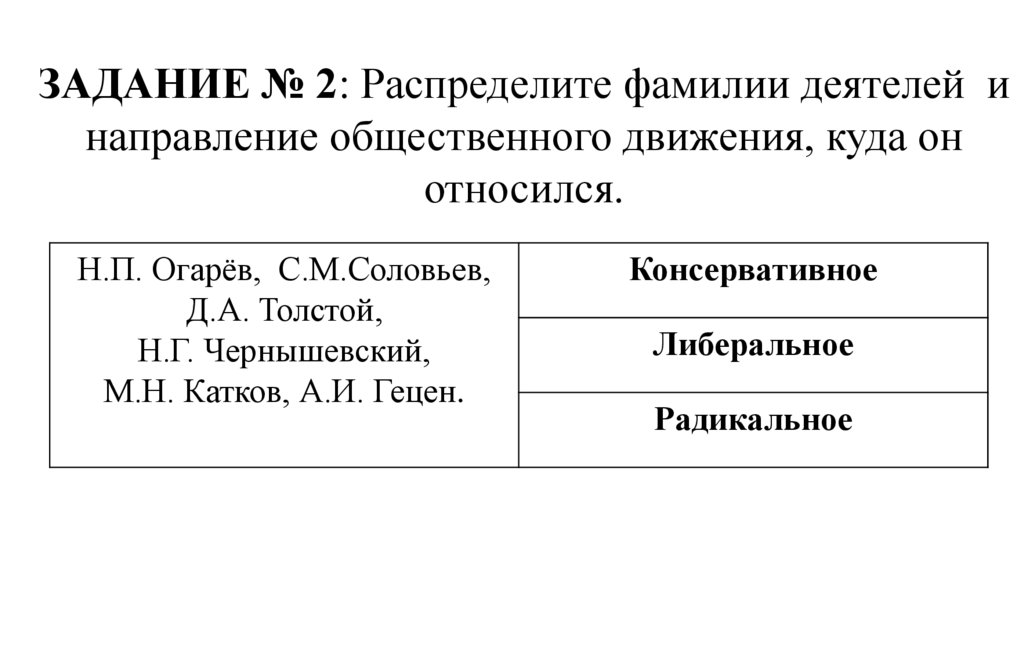 ЗАДАНИЕ № 2: Распределите фамилии деятелей инаправление общественного движения, куда он