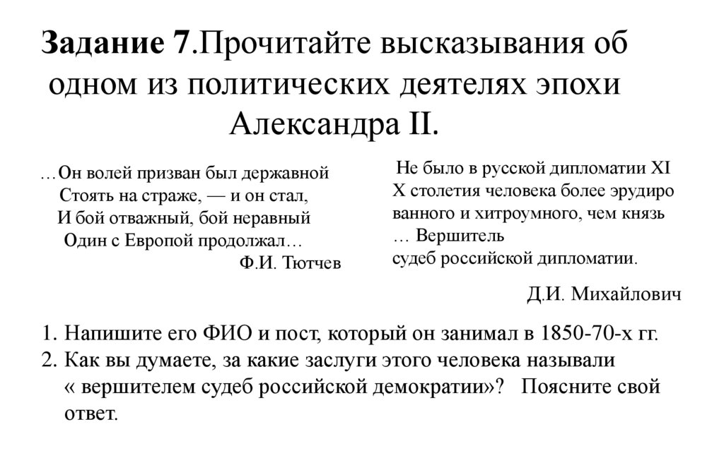 Задание 7.Прочитайте высказывания ободном из политических деятелях эпохи