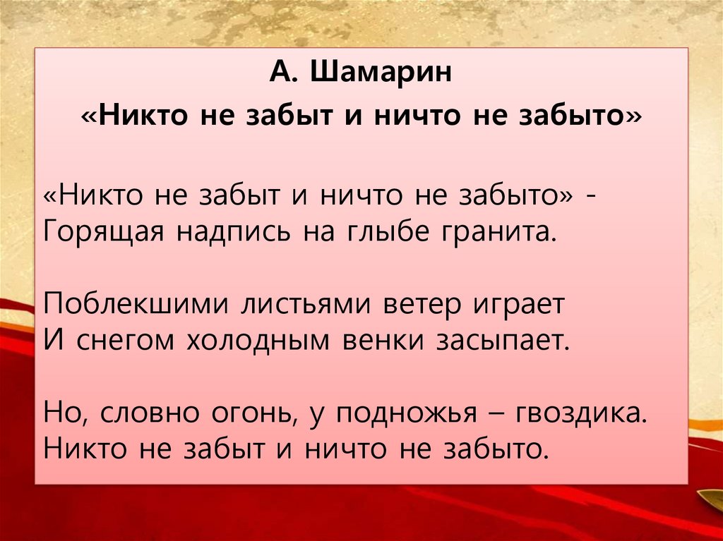 А. Шамарин«Никто не забыт и ничто не забыто»