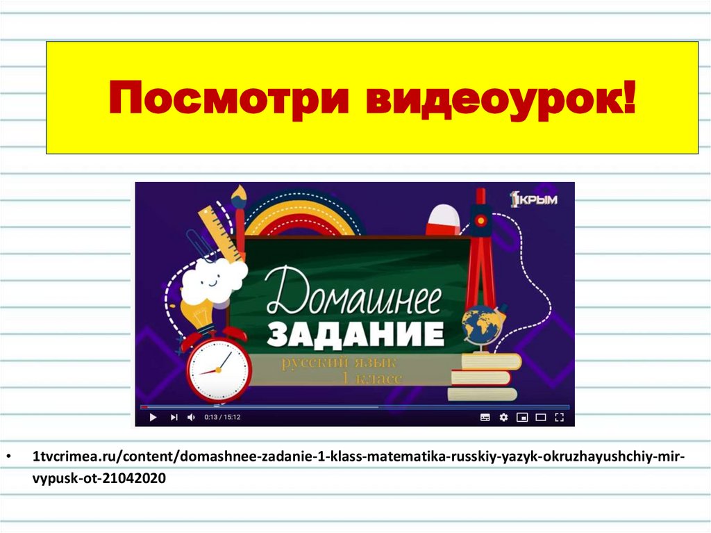 Посмотри видеоурок!1tvcrimea.ru/content/domashnee-zadanie-1-klass-matematika-russkiy-yazyk-okruzhayushchiy-mirvypusk-ot-21042020