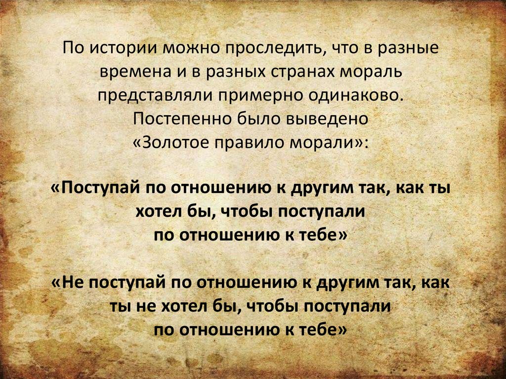 По истории можно проследить, что в разныевремена и в разных странах мораль