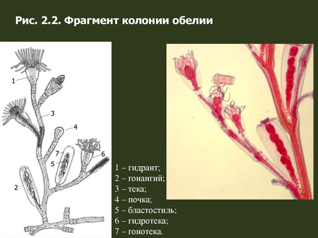 Рис. 2.2. Фрагмент колонии обелии1 – гидрант;